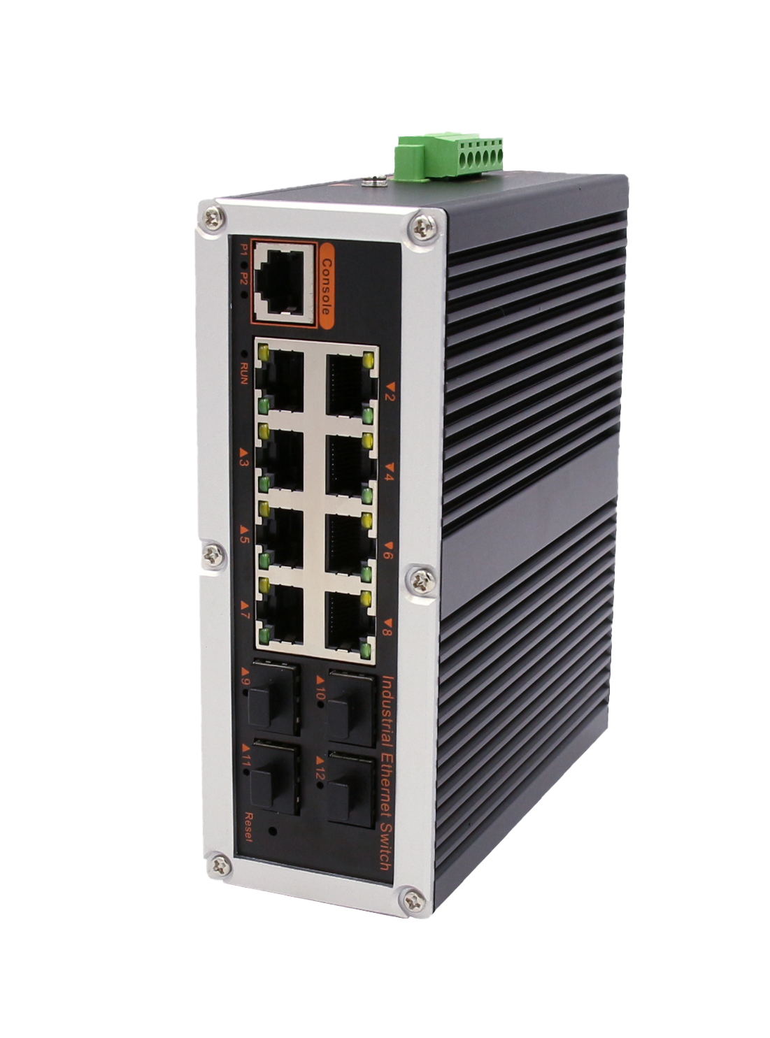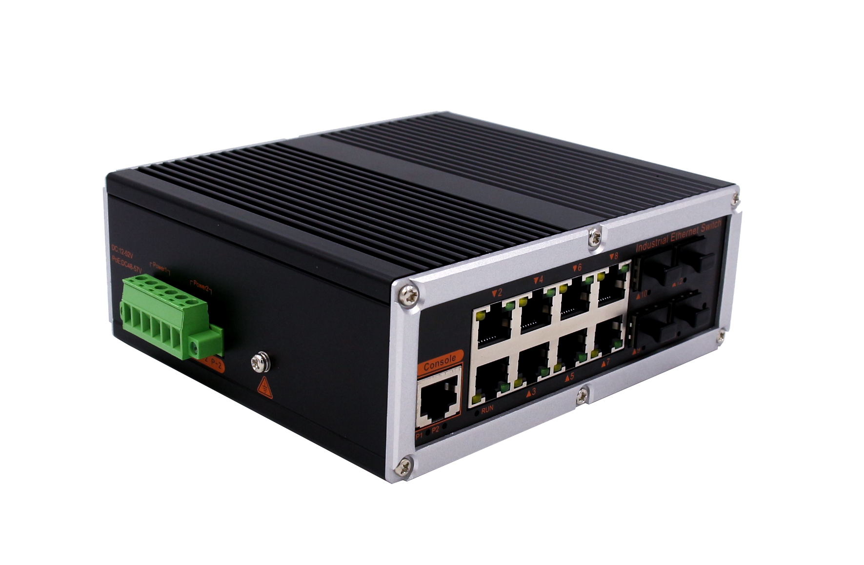 4個千兆光+8個千兆自適應電口、SFP接口、DC12-52V供電 |