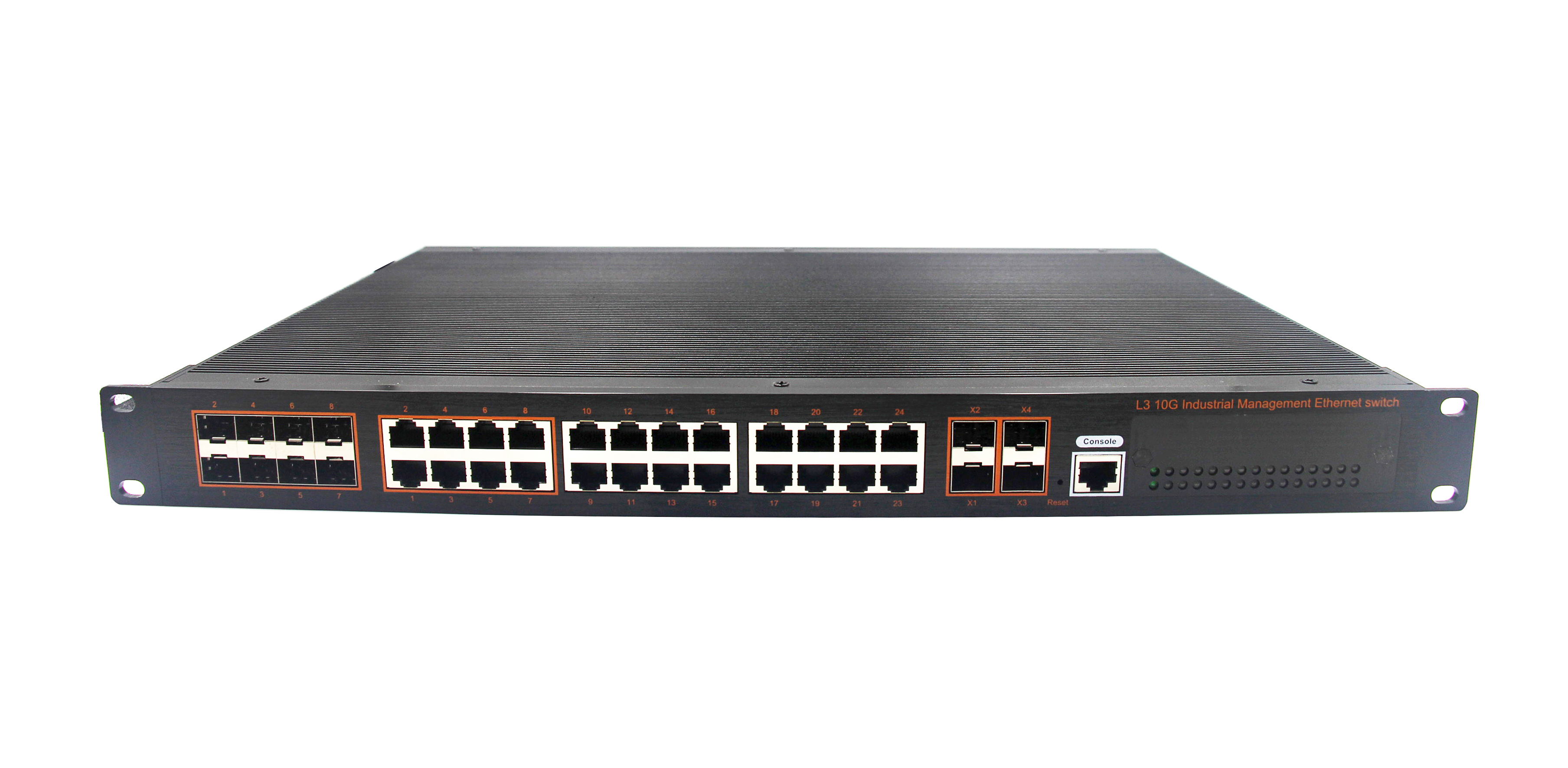 24千兆電口8千兆復用光口4個萬兆SFP萬兆網管型機架式工業匯聚交換機 |