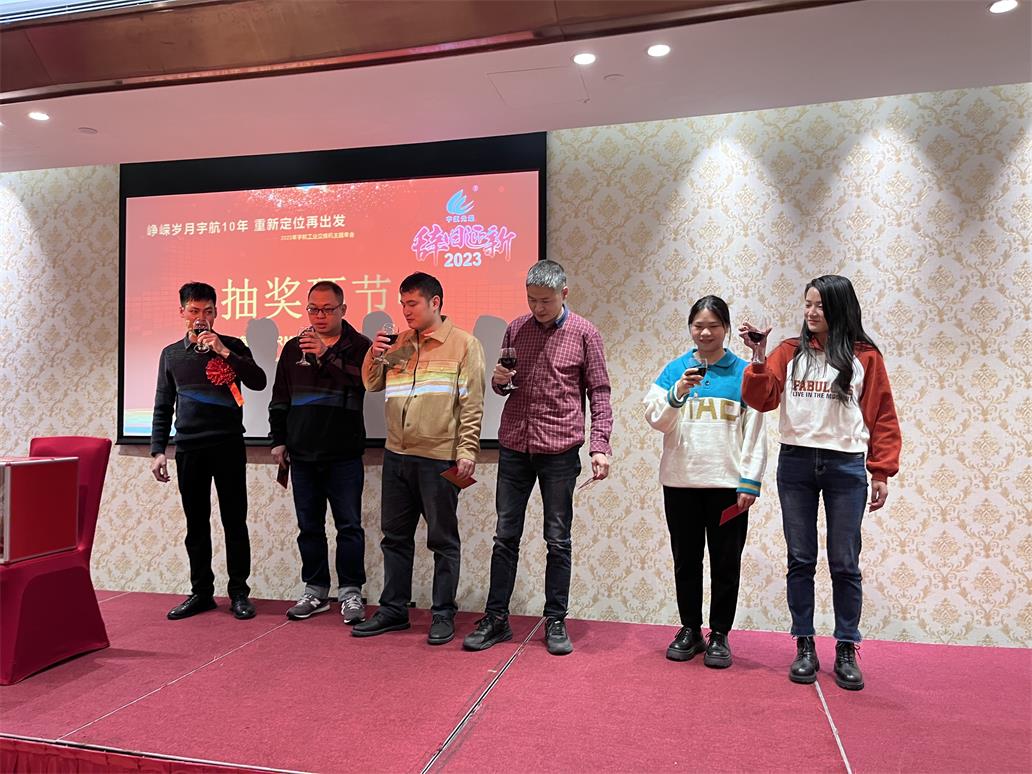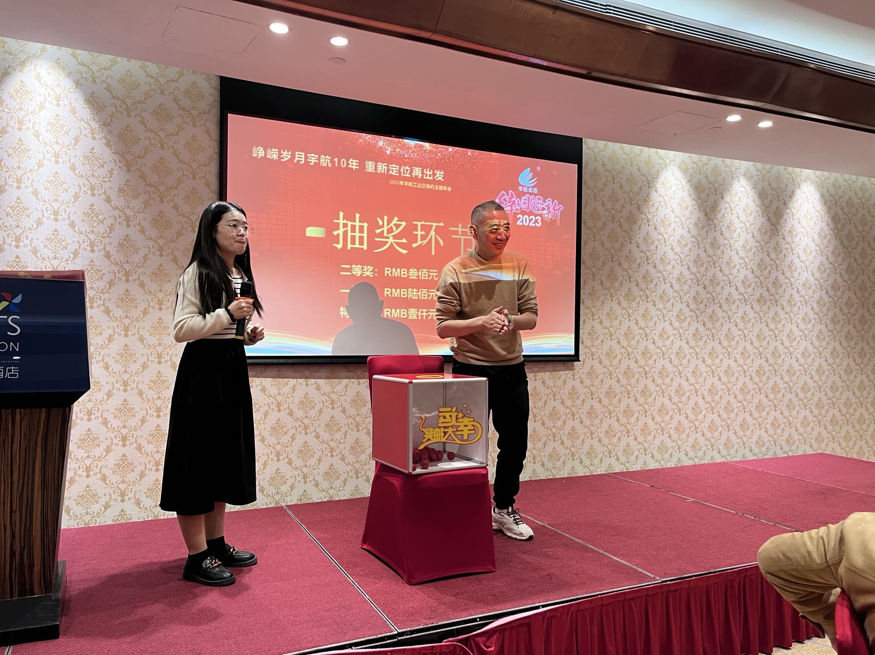 7日17:00整,2023宇航工業交換機主題年會正式開始,時長四個小時,整個過程有夢想,有感動,有感恩,有頒獎,有游戲,有抽獎,整個現場熱火朝天,掌聲雷動。