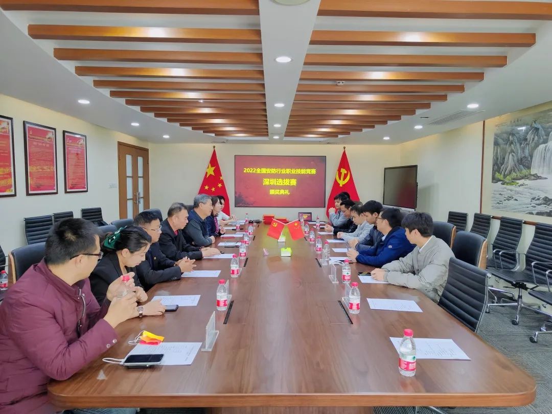 2月9日,“全國安防行業職業技能競賽”深圳選拔賽頒獎儀式在深圳市安全防范行業協會(簡稱“深安協”)秘書處會議室成功舉辦!深安協副會長王達,秘書長王君利,執行秘書長張霞,常務副秘書長黃云萍等協會領導出席;浙江宇視科技有限公司、杭州??低晹底旨夹g股份有限公司深圳分公司、深圳市宇航光通科技有限公司等單位代表,以及獲獎選手等到場領獎。