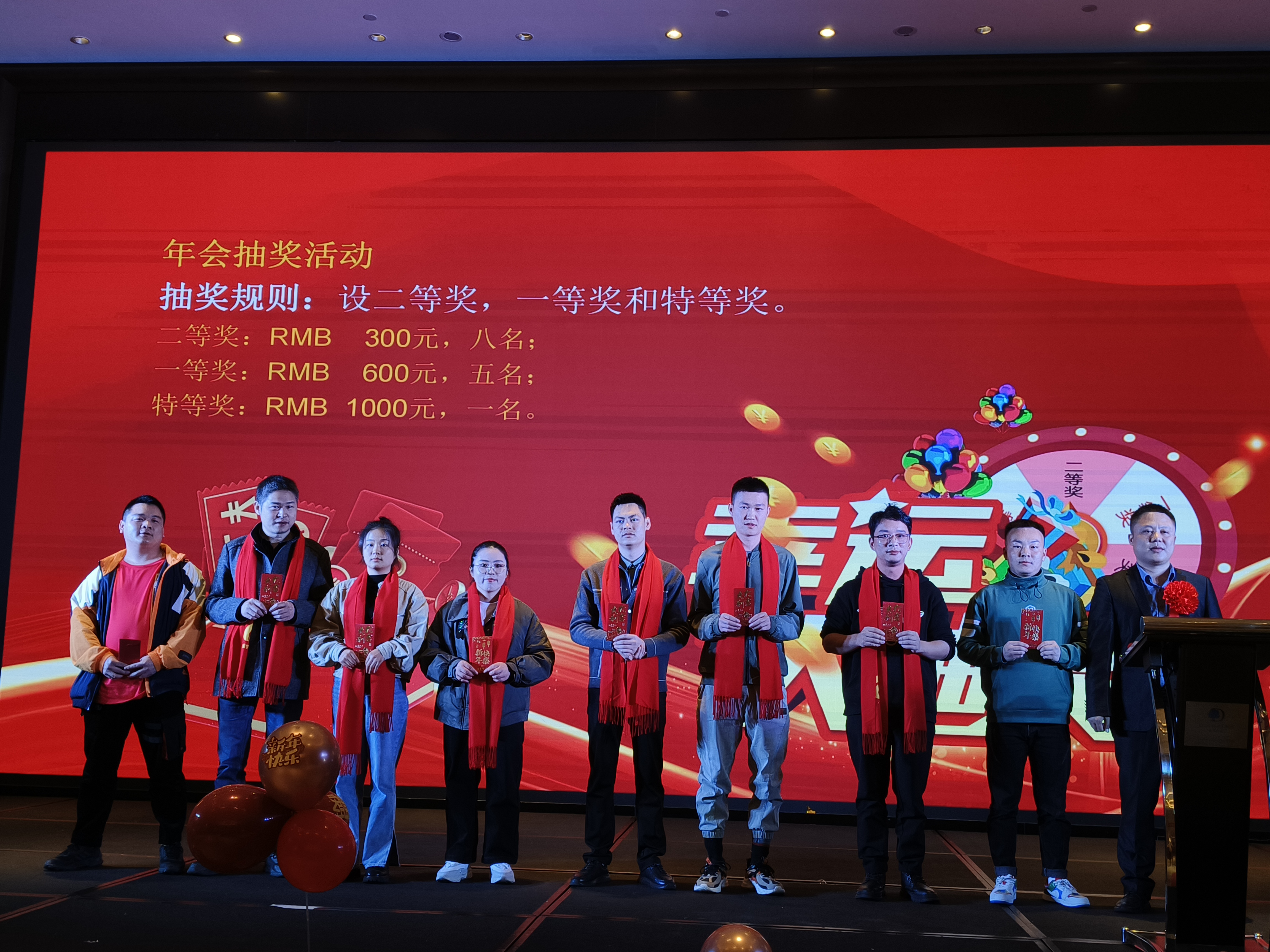 此刻,每個(gè)人都被這濃厚的喜悅氛圍所包圍,共同慶祝這個(gè)難忘的時(shí)刻。年會(huì)因這激動(dòng)人心的抽獎(jiǎng)環(huán)節(jié)而達(dá)到了高潮,為大家留下了難忘的回憶。