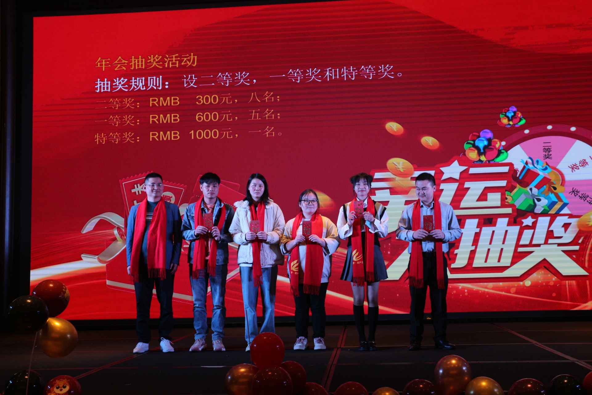 首先揭曉的是二等獎(jiǎng),RMB 300元,共有八名幸運(yùn)兒。當(dāng)主持人逐一念出他們的名字時(shí),每一張面孔都綻放出燦爛的笑容,他們的喜悅之情溢于言表。緊接著是一等獎(jiǎng)RMB 600元,五名同事欣喜若狂地沖上臺(tái),他們的笑聲和歡呼聲點(diǎn)燃了整個(gè)現(xiàn)場(chǎng)。