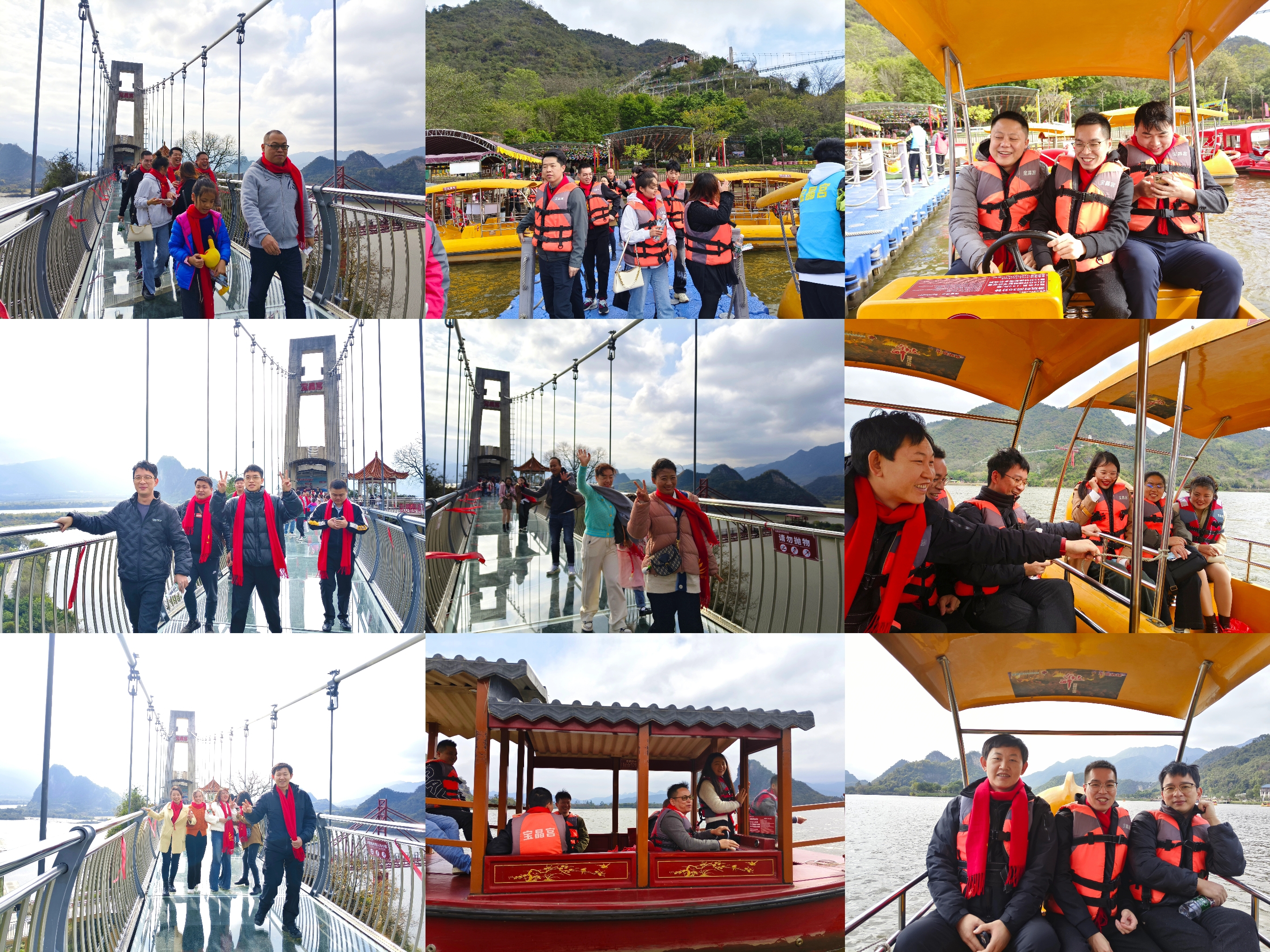 到達(dá)目的地后,首先挑戰(zhàn)了天宮玻璃橋。站在透明的橋面上,俯瞰腳下的山谷,確實(shí)令人膽戰(zhàn)心驚。但正是這樣的挑戰(zhàn)讓大家更加緊密地團(tuán)結(jié)在一起,大家互相鼓勵(lì)、支持,甚至有恐高的同事也在大家的鼓勵(lì)下克服了恐懼,勇敢地走了過(guò)去。玻璃橋上留下了我們的歡聲笑語(yǔ)和勇敢的身影。隨后,我們來(lái)到了天鵝湖進(jìn)行游船,欣賞著湖光山色,微風(fēng)拂面,水波蕩漾,我們?cè)谶@寧?kù)o而美麗的環(huán)境中放松心情,感受大自然的魅力。最后,我們參觀了壯觀的溶洞,洞內(nèi)石筍、石幔等形態(tài)各異,光怪陸離,大家驚嘆于大自然的鬼斧神工,紛紛拍照留念。在溶洞出口處,有一段不走回頭路的臺(tái)階,大家相互幫助、攜手并進(jìn),沒(méi)有一個(gè)人掉隊(duì),每個(gè)人都成功走了過(guò)去。