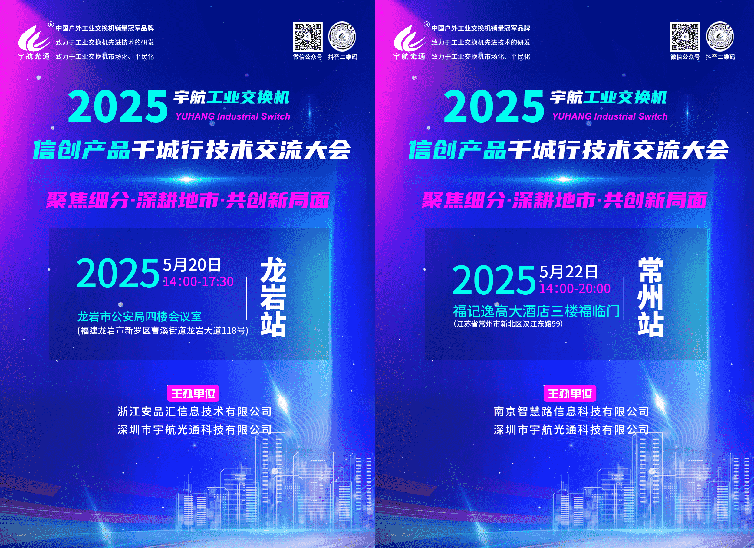 2025年5月13日至17日,宇航工業(yè)交換機(jī)連續(xù)亮相全國(guó)多地重要行業(yè)展會(huì),包括重慶工業(yè)自動(dòng)化展、2025中國(guó)石油石化企業(yè)信息技術(shù)交流大會(huì)、山東水展、四川電力展,同時(shí)成功舉辦了千城行江蘇南京站、福建泉州站及福建廈門站系列技術(shù)交流活動(dòng)。作為全國(guó)產(chǎn)工業(yè)交換機(jī)發(fā)起單位和中國(guó)戶外工業(yè)交換機(jī)銷量冠軍品牌,宇航工業(yè)交換機(jī)在七場(chǎng)活動(dòng)中全面展示了最新推出的全國(guó)產(chǎn)系列和飛天鋁合金系列工業(yè)交換機(jī)產(chǎn)品,宇航技術(shù)團(tuán)隊(duì)向與會(huì)嘉賓深入解析了面向工業(yè)自動(dòng)化、石油石化、水務(wù)管理、電力能源等關(guān)鍵領(lǐng)域的創(chuàng)新技術(shù)解決方案,充分彰顯了宇航工業(yè)交換機(jī)在工業(yè)通信領(lǐng)域的技術(shù)積累與戰(zhàn)略布局。
