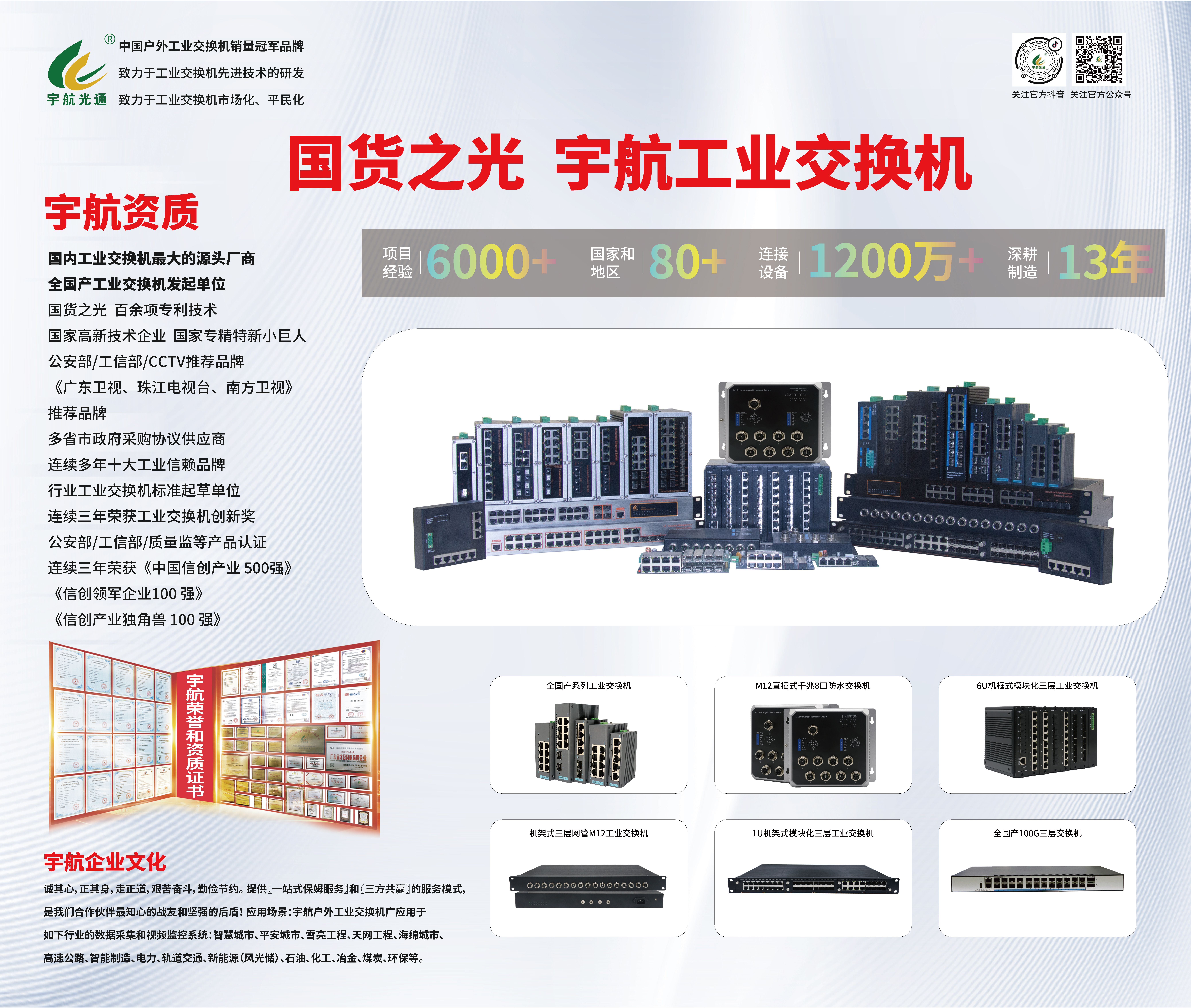 據(jù)中華網(wǎng)和中國經(jīng)濟(jì)新聞網(wǎng)報道,作為全國產(chǎn)工業(yè)交換機(jī)標(biāo)準(zhǔn)發(fā)起單位及中國戶外工業(yè)交換機(jī)銷量領(lǐng)先品牌,宇航工業(yè)交換機(jī)全國產(chǎn)系列產(chǎn)品已通過國家級認(rèn)證,榮獲"信創(chuàng)產(chǎn)品評估證書"(即全國產(chǎn)認(rèn)證),充分驗(yàn)證了其技術(shù)自主性與產(chǎn)品可靠性。