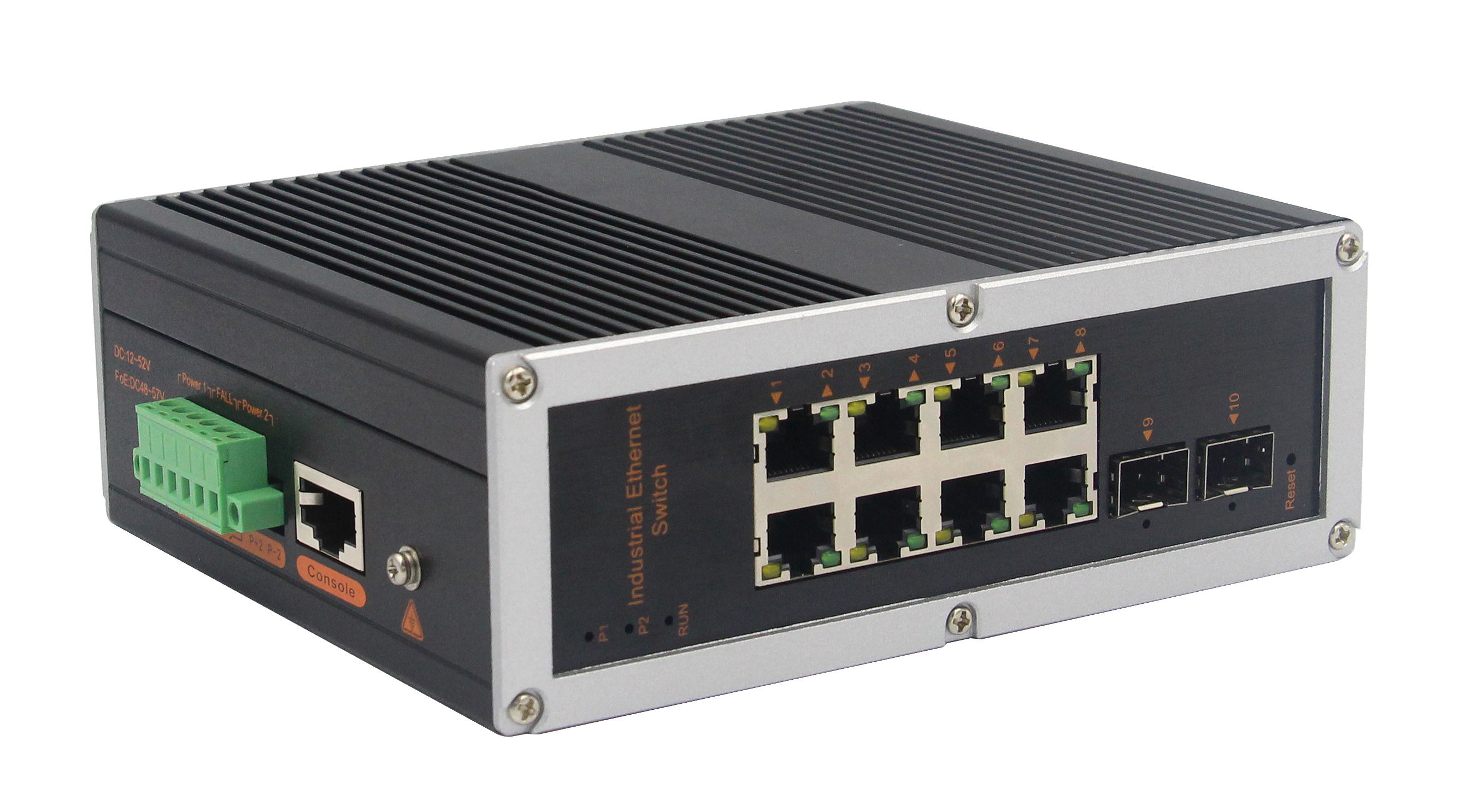 網管型千兆2光8電工業(yè)以太網交換機,產品符合FCC、CE、ROHS標準。支持2個千兆光口和8個千兆電口,支持一路console口;支持工業(yè)現(xiàn)場所需的以太網二層協(xié)議,保證通信網絡的穩(wěn)定性;該系列交換機采用低功耗、無風扇設計,確保無噪聲干擾,同時支持-40~85℃工作溫度和良好的EMC電磁兼容性能,保證在惡劣的工業(yè)環(huán)境中保持穩(wěn)定的工作,為工廠自動化,智能交通,視頻監(jiān)控等工業(yè)應用領域組建快速穩(wěn)定的網絡終端接入網絡提供安全可靠的解決方案。護等級的外殼及 LED 指示燈,使之成為一個即插即用的工業(yè)級設備,為用戶的以太網設備聯(lián)網提供可靠、便捷的解決方案。