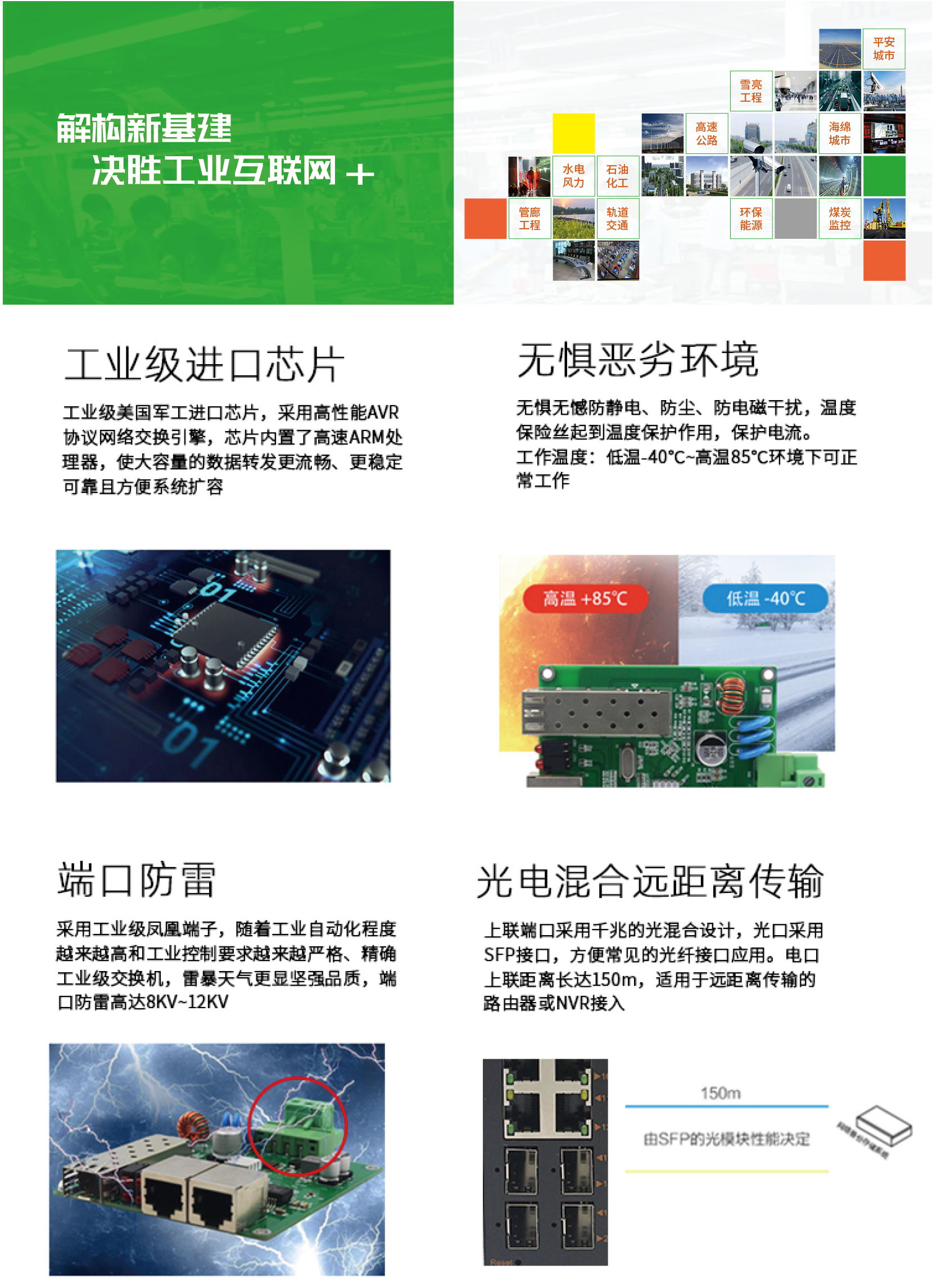 | 采用工業(yè)級元器件,具有防雷、防過壓、防浪涌設計,雙電源輸入,保證在不良自然天氣及電壓不穩(wěn)環(huán)境下網絡的正常運行 | |