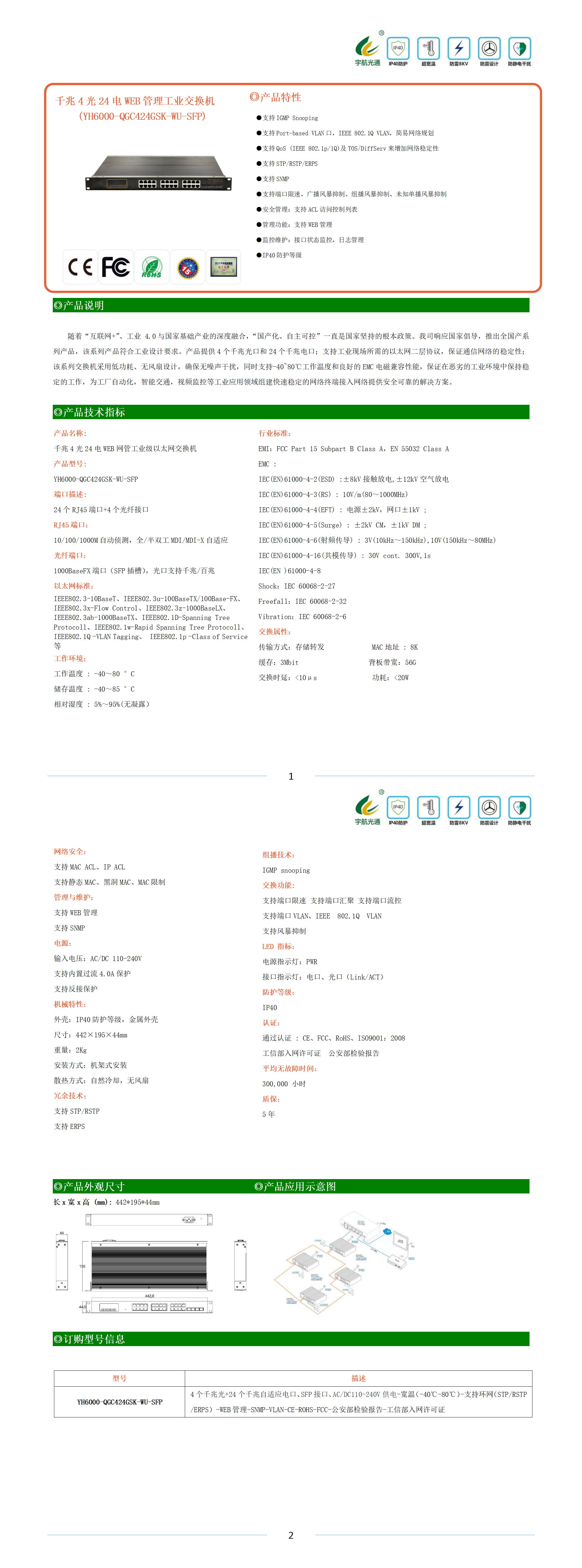 隨著“互聯網+”、工業 4.0與國家基礎產業的深度融合,“國產化、自主可控”一直是國家堅持的根本政策。我司響應國家倡導,推出全國產系列產品,該系列產品符合工業設計要求。產品提供4個千兆光口和24個千兆電口;支持工業現場所需的以太網二層協議,保證通信網絡的穩定性;該系列交換機采用低功耗、無風扇設計,確保無噪聲干擾,同時支持-40~80℃工作溫度和良好的EMC電磁兼容性能,保證在惡劣的工業環境中保持穩定的工作,為工廠自動化,智能交通,視頻監控等工業應用領域組建快速穩定的網絡終端接入網絡提供安全可靠的解決方案。